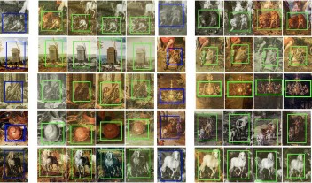 Elizabeth Honig 是加州大学伯克利分校的艺术史学家,她专注于利用人工智能分析文艺复兴时期艺术家的作品图像以及它们对其他艺术家创作的影响。Honig 使用了一个包含 1500 余幅勃鲁盖尔家族画作数字复制品的数据库。人工智能在这项研究中的优势在于能够从大量图像中识别出常常被人们忽视的细节。例如,对于画作中出现的风车,数据库中包含了数百张含有风车的画作,人工智能算法可以提取相似的结构和位置,进而分析作品之间的相似性和不同的绘画方式。这项研究成果于 2019 年发表在《通过空间一致的特征学习发现艺术收藏中的视觉模式》一文中详细介绍了其方法与结果。129该项目在 Jan Brueghel 及其工作室的 1587 件艺术品的数据集中注释了 273 个接近重复的细节。