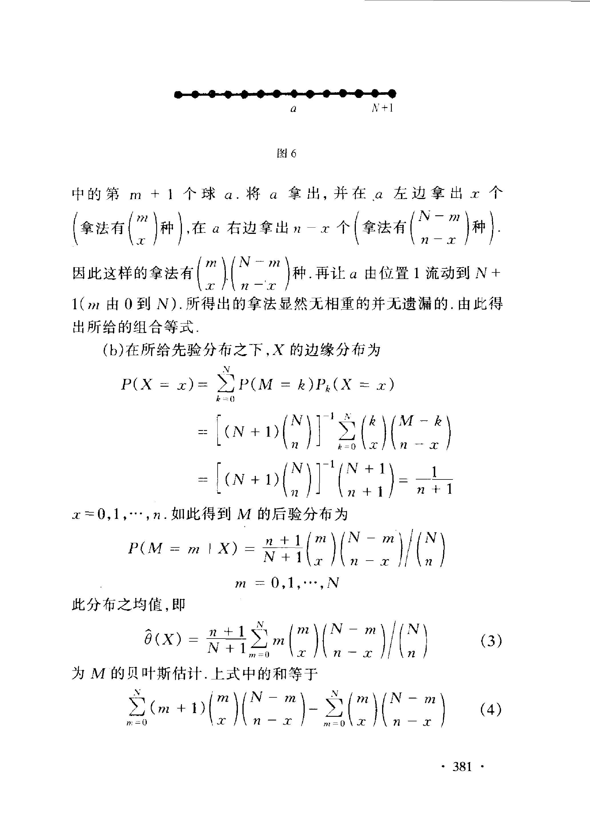(a)考虑 \(N+1\) 个球, 自左至右排成一列, 如图 6. 现要从其 中拿出 \(n+1\) 个, 拿法有 \(\left(\begin{array}{c}N+1 \\ n+1\end{array}\right)\) 种. 将拿法作如下的分解: 固定列