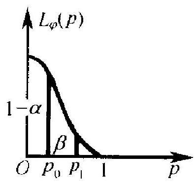 如图 5.3 所示, 为实现 (2.43), 可能试着选一 个 \(n\), 按 \((2.40)\) 决定 \(C\). 定出 \(C\) 后, 把 \(p=p_{1}\) 代人 (2.42) 算出 \(L_{\varphi}\left(p_{1}\right)\). 若 \(L_{\varphi}\left(p_{1}\right)<\beta\), 则 \(n\) 取得太大了. 若 \(L_{\varphi}\left(p_{1}\right)>\beta\), 则 \(n\) 取得太 小,经调整 \(n\) 值之后再重复上述试算。应用 上,对一些特定的 \(p_{0}, p_{1}\) 和 \(\alpha, \beta\) 值,把 \(n\) 和 \(C\) 的值造了表.