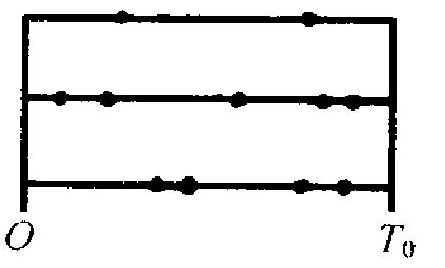 - 元件失效时刻 图 5.4 元件. 现在对试验作一点修改: 开始时 \(n\) 个元件参试,不论在 \(T_{0}\) 之前的哪个时刻其中哪个元件失效了, 就立即用一个新的替换上 去. 到时刻 \(T_{0}\) 时结束试验, 把到那时为止失效的元件总数记为 \(X\). 如图 5.4 , 表示在时刻 0 有 3 个元件参试, 到时刻 \(T_{0}\) 结束, 共 有 \(X=11\) 个元件失效.